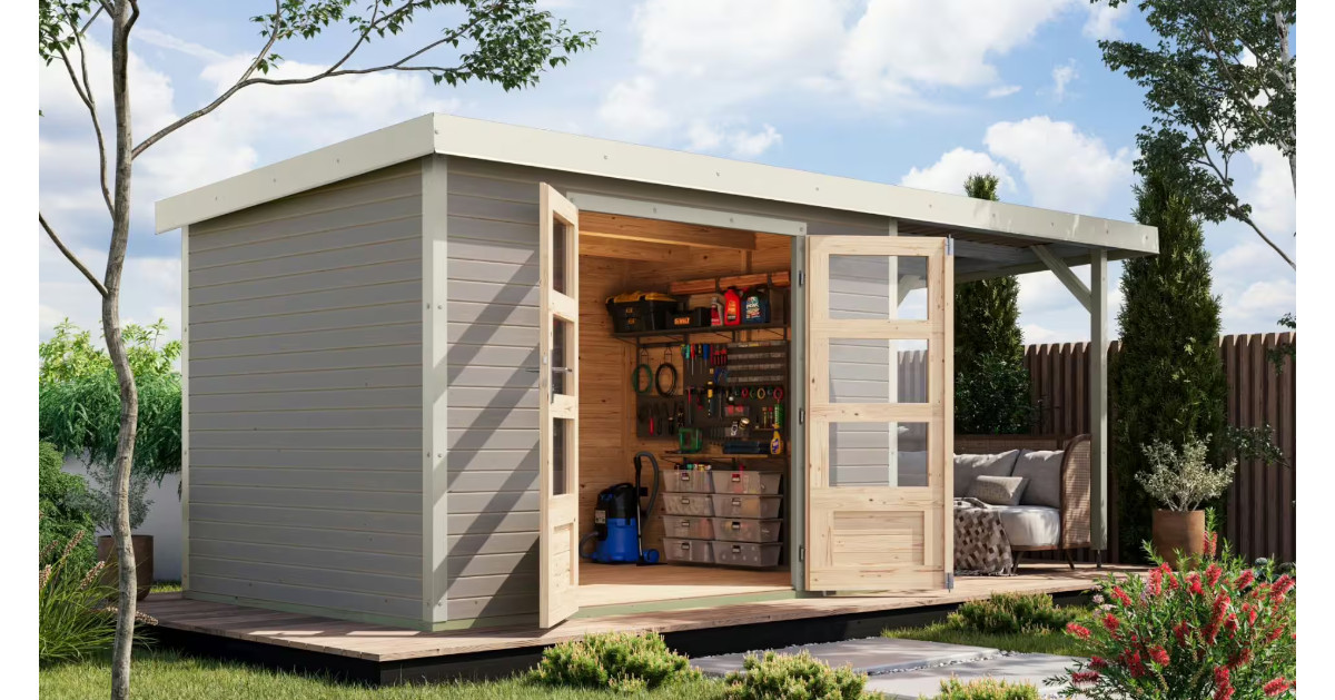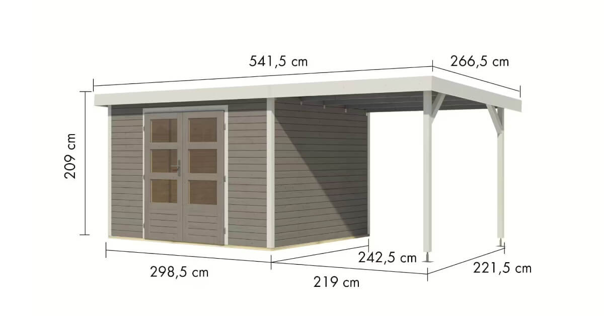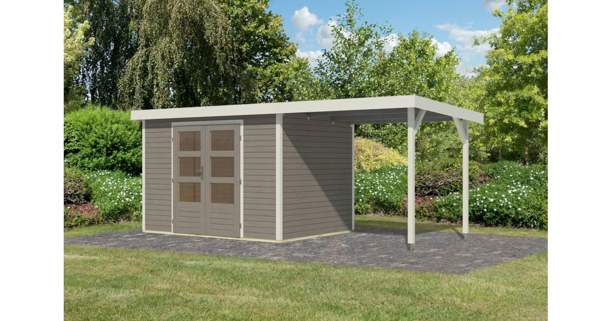 Mit dem optionalen Anbaudach erhalten Sie zusätzlichen Stauraum und erweiterte Nutzungsmöglichkeiten als Gartenlounge. Machen Sie es zu Ihrem persönlichen Rückzugsort.