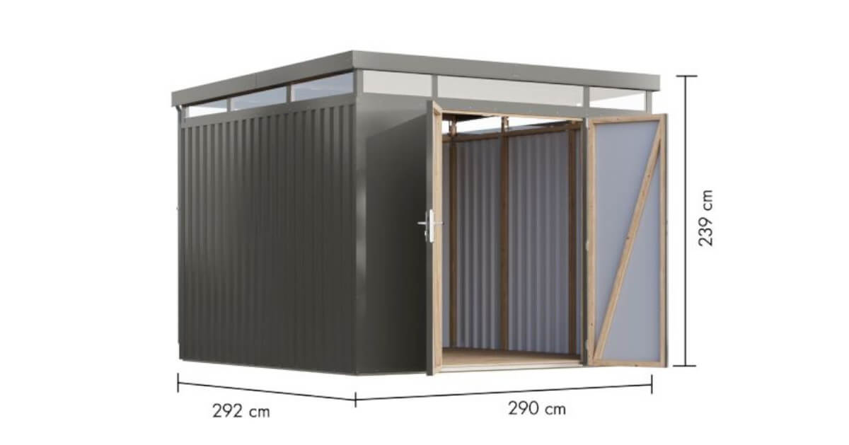 Ein weiteres Plus: Eine Regenrinne mit Fallrohr ist bereits im Lieferumfang enthalten. Für effiziente Wasserableitung, trockene Wände und zusätzliche Langlebigkeit der gesamten Konstruktion. Konstruiert und produziert in Deutschland steht dieses Metallhaus für Qualität, Präzision und langlebige Wertarbeit – eine Lösung, die heute begeistert und morgen überzeugt.