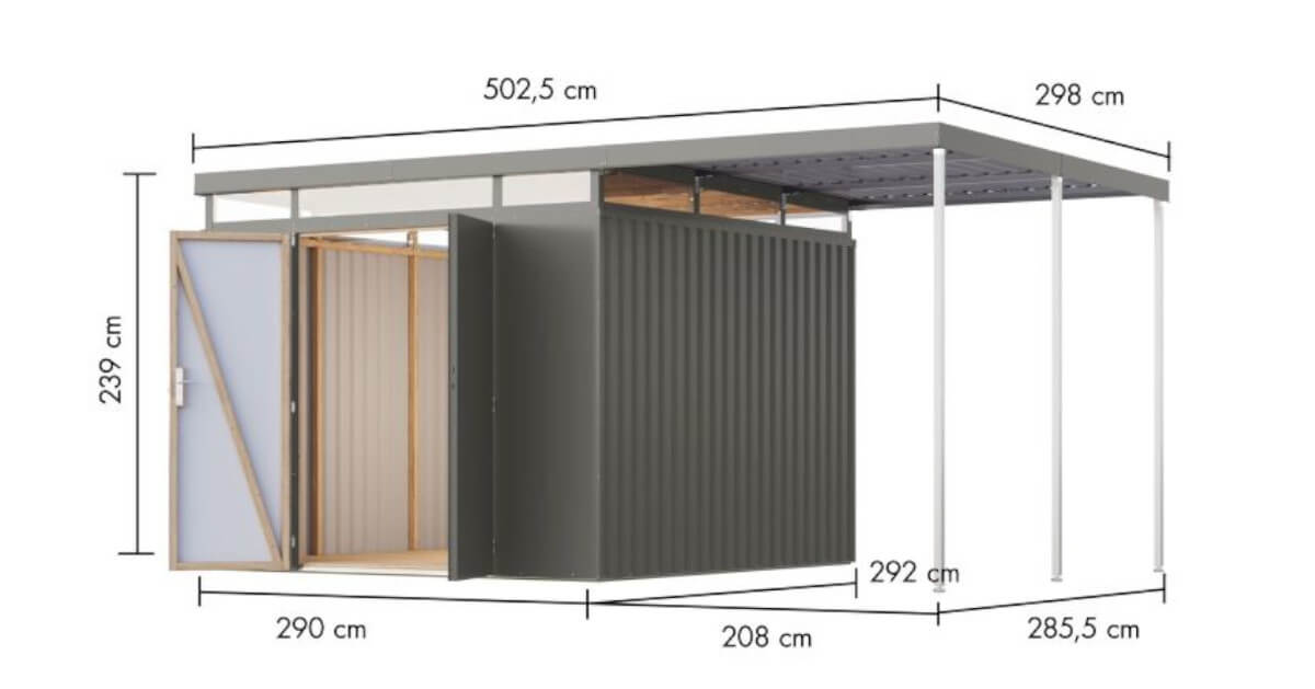 Eine kesseldruckimprägnierte Unterkonstruktion sorgt zusätzlich für optimalen Schutz. Gleichzeitig ermöglicht der Leimholzrahmen einfache Befestigungspunkte für Regalsysteme – ganz ohne Bohren in Metall. Für 100% Witterungsschutz sorgt die hochwertige 25 μm Polyesterbeschichtung, die eine nahtlose Schutzschicht bildet. Sie profitieren von dauerhaftem Korrosionsschutz, abgesichert durch eine 5-jährige Garantie gegen Durchrostung. Die Oberfläche ist farbstabil, UV-beständig, dauerhaft schön und dabei äußerst wartungsarm – perfekt für alle, die Wert auf Langlebigkeit legen.