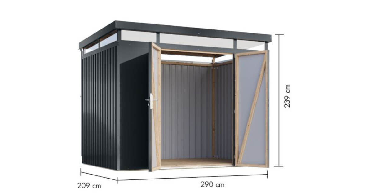 Ein weiteres Plus: Eine Regenrinne mit Fallrohr ist bereits im Lieferumfang enthalten. Für effiziente Wasserableitung, trockene Wände und zusätzliche Langlebigkeit der gesamten Konstruktion. Konstruiert und produziert in Deutschland steht dieses Metallhaus für Qualität, Präzision und langlebige Wertarbeit – eine Lösung, die heute begeistert und morgen überzeugt.