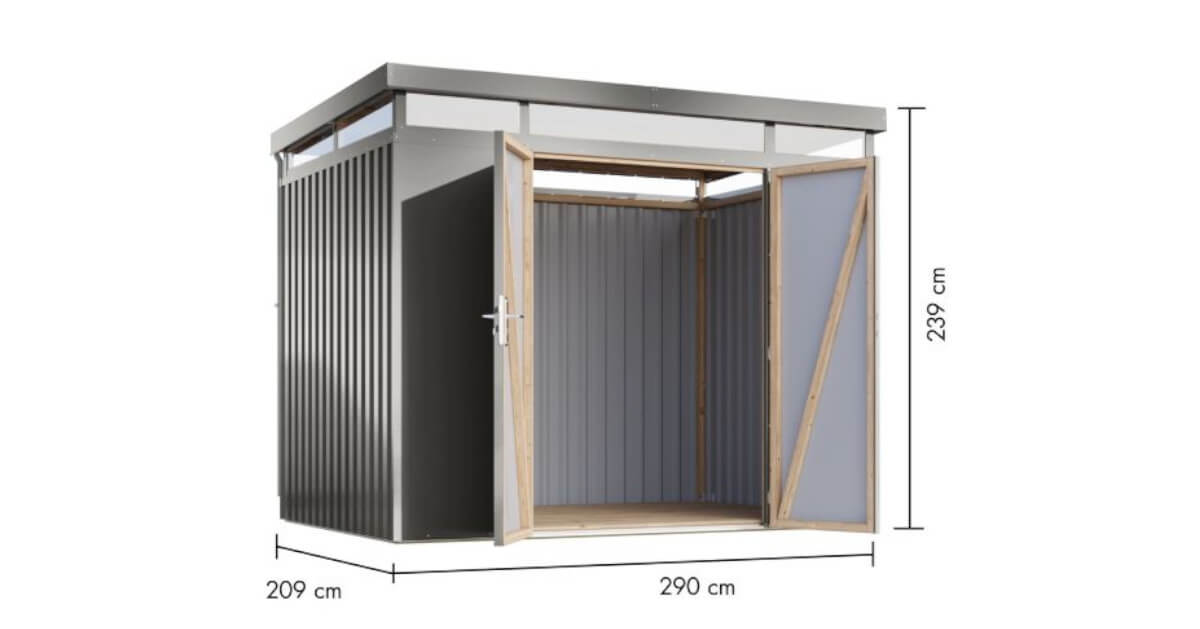 - Türhöhe: Die großzügigen Türhöhen unserer Metall-Gartenhäuser von Karibu bieten optimalen Komfort und Flexibilität. Je nach Modell verfügen die Türen über eine Durchgangshöhe von 194 cm. Damit ermöglichen sie ein bequemes Betreten – ob für alltägliche Gartenarbeiten oder zum Verstauen größerer Geräte.