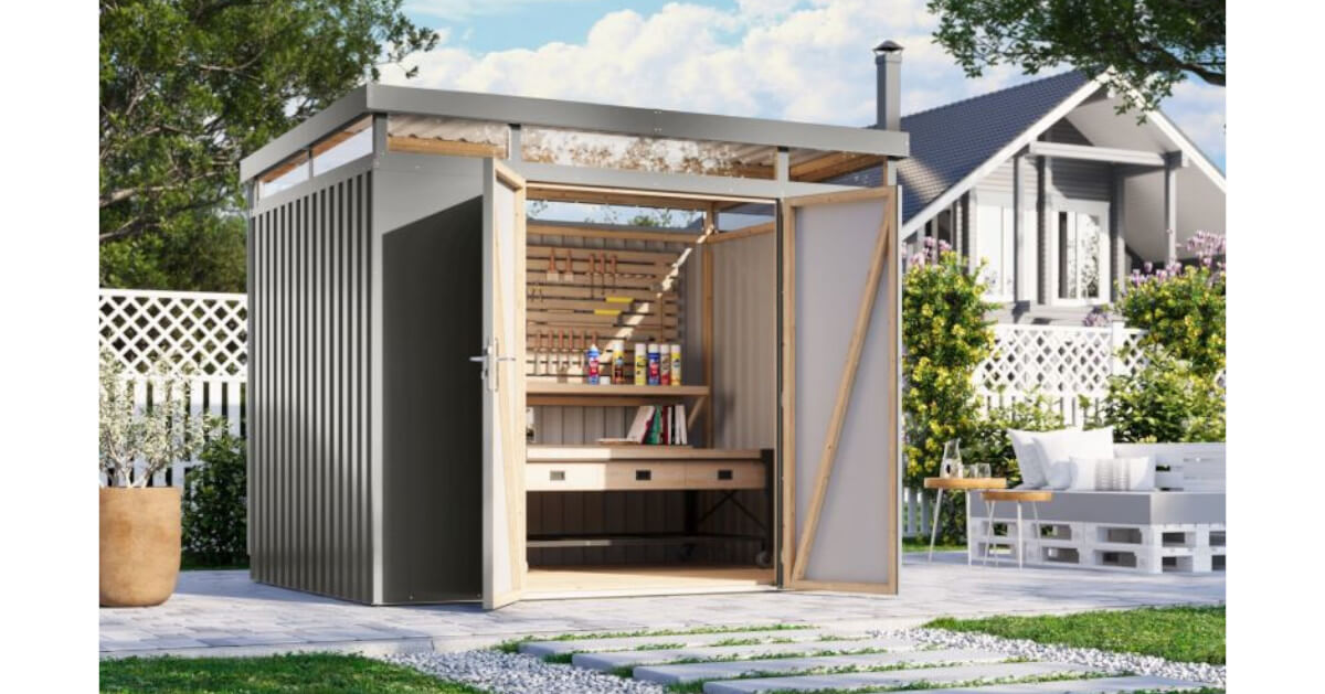 Ein weiteres Plus: Eine Regenrinne mit Fallrohr ist bereits im Lieferumfang enthalten. Für effiziente Wasserableitung, trockene Wände und zusätzliche Langlebigkeit der gesamten Konstruktion. Konstruiert und produziert in Deutschland steht dieses Metallhaus für Qualität, Präzision und langlebige Wertarbeit – eine Lösung, die heute begeistert und morgen überzeugt.