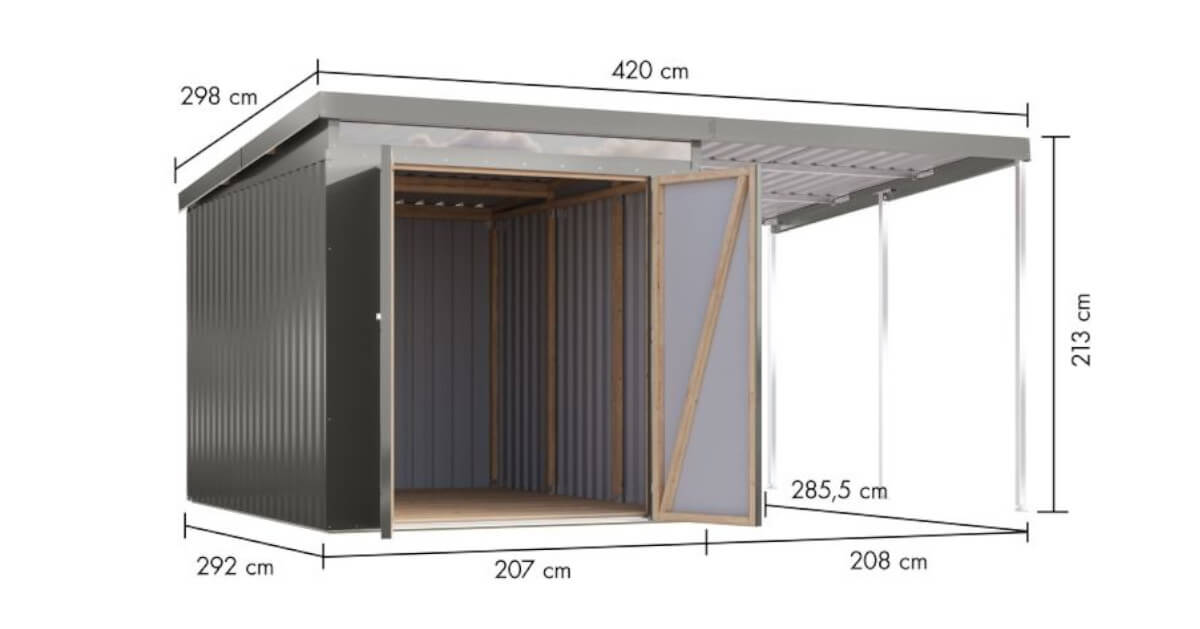 Karibu Metallhaus Iridium 2,5 mit Anbaudach