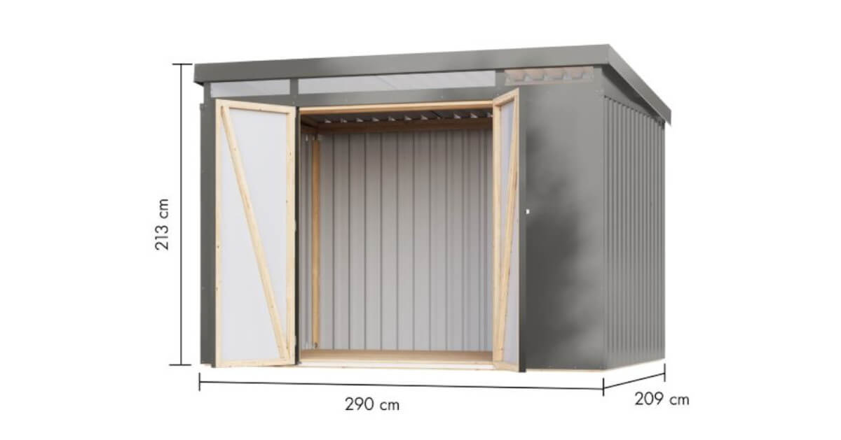 - Oberlicht: Durch das Oberlicht aus Kunstglas in der Front unter dem Dach gelangt sehr viel Tageslicht ins Innere Ihres neuen Metall-Gartenhauses von Karibu.