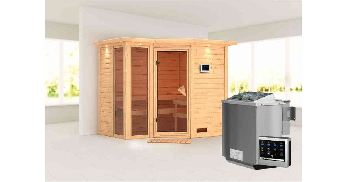 Karibu 38mm Systemsauna Amara mit 9kW BIO-Kombiofen mit ext. Steuerung Easy