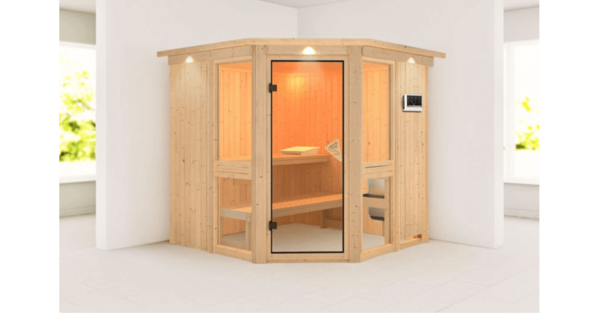 Diese Sauna vereint durchdachte Technik mit klarer Formensprache und schafft einen Ort, an dem sich Wärme, Ruhe und Design auf natürliche Weise verbinden. Mit ihren großzügigen Außenmaßen von 196 x 196 cm bietet sie ausreichend Platz für ausgedehnte Saunagänge – ob alleine, zu zweit oder als entspannter Wochenend-Rückzugsort mit der Familie. Der Eckeinstieg macht die Platzierung besonders flexibel und erlaubt es, die Sauna selbst in verwinkelten Räumen oder in durchdacht geplanten Wellnessbereichen optimal zu integrieren. Dank des spiegelbaren Aufbaus passt sie sich dabei mühelos an Ihre räumlichen Gegebenheiten an. Die 68 mm starke Wandkonstruktion in solider Elementbauweise sorgt für hohe Stabilität und eine lange Lebensdauer. Im Inneren der Wände unterstützt eine Mineralwolldämmung die gleichmäßige Wärmeverteilung und hält die Temperatur effizient auf konstantem Niveau – perfekt für entspannte, tiefe Saunagänge, bei denen man nicht nur körperlich, sondern auch mental abschalten kann. Ob nach einem aktiven Tag, als gesundes Ritual im Winter oder einfach, um sich einen Moment der Ruhe zu gönnen: Diese Sauna schafft dafür die ideale Umgebung. Ein gestalterisches Highlight ist die bronzierte Ganzglastür, die gemeinsam mit zwei seitlich platzierten bronzierten Fensterelementen die Front prägt. Die integrierten Blendapplikationen sorgen dabei für eine sanfte Lichtstreuung und schenken dem Innenraum eine geschützte, fast intime Atmosphäre. Das getönte Glas verleiht der Sauna eine warme, edle Optik und bewahrt zugleich die gewünschte Privatsphäre – ein harmonisches Zusammenspiel aus Transparenz und Geborgenheit. Im Inneren lädt das Interieur mit zwei komfortablen 57 cm tiefen Bänken aus Espe-Holz zum Sitzen, Liegen und Verweilen ein. Die helle, astarme Holzart bleibt auch bei höheren Temperaturen angenehm auf der Haut und sorgt für ein natürliches, beruhigendes Raumgefühl. Eine Kopfstütze aus Espe unterstützt zusätzlich eine entspannte Haltung. Das Ofenschutzgitter aus Fichte fügt sich optisch harmonisch in das Design ein und sorgt für Sicherheit – besonders dann, wenn auch Kinder mit saunieren oder Sie sich frei im Raum bewegen möchten. Wer dem Raum noch mehr Atmosphäre verleihen möchte, kann die Sauna mit einem optional erhältlichen Dachkranz mit integrierten LEDs ausstatten. Das indirekte Licht bringt die natürliche Maserung des Holzes besonders zur Geltung und taucht den Innenraum in eine stimmungsvolle, sanft leuchtende Kulisse – ideal für Abendstunden, an denen Sie die Sauna nicht nur als Wärmequelle, sondern als vollständigen Rückzugsort erleben möchten. Diese Sauna ist kein Standardprodukt, sondern ein Teil Ihrer persönlichen Auszeitkultur. Sie schenkt Ihnen regelmäßig Momente, in denen der Alltag draußen bleibt und der Fokus ganz auf dem Hier und Jetzt liegt – ein Ort zum Atmen, Aufwärmen, Entspannen. Ein Ort für Sie.