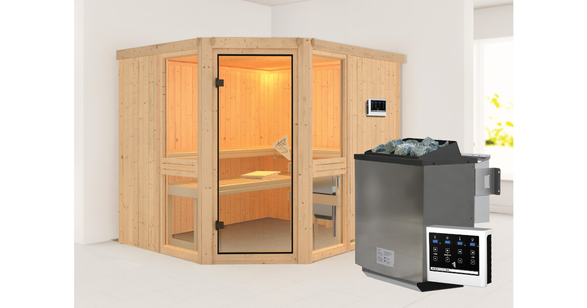 Karibu 68mm Systemsauna Amelia 3 + 9kW BIO-Kombiofen mit ext. Steuerung Easy