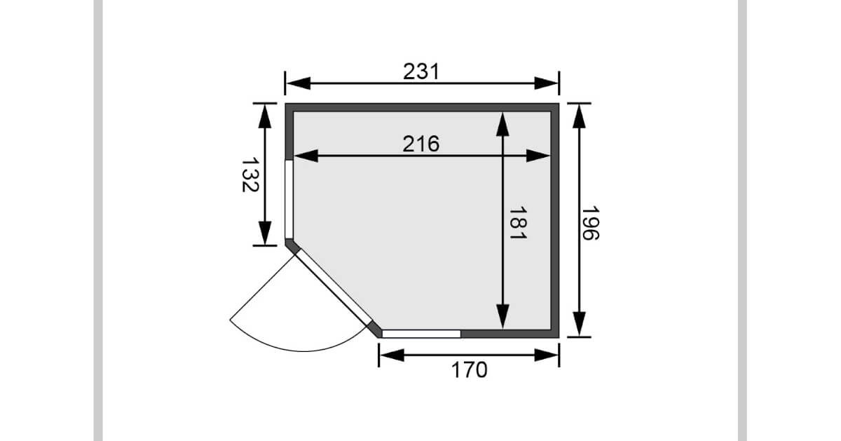- Innenmaße: 216 x 181 cm, 192 cm hoch