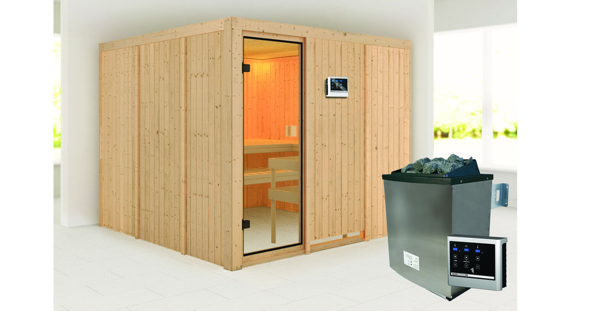 Karibu 68mm Systemsauna Arvika + 4,5kW Saunaofen mit externer Steuerung