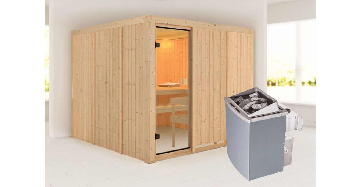 Karibu 68mm Systemsauna Arvika + 4,5kW Saunaofen mit integrierter Steuerung