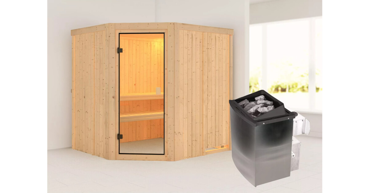 Karibu 68mm Systemsauna Bodo + 9kW Saunaofen mit integrierter Steuerung