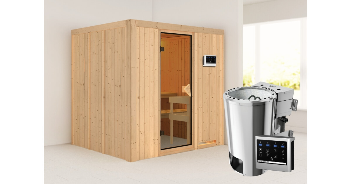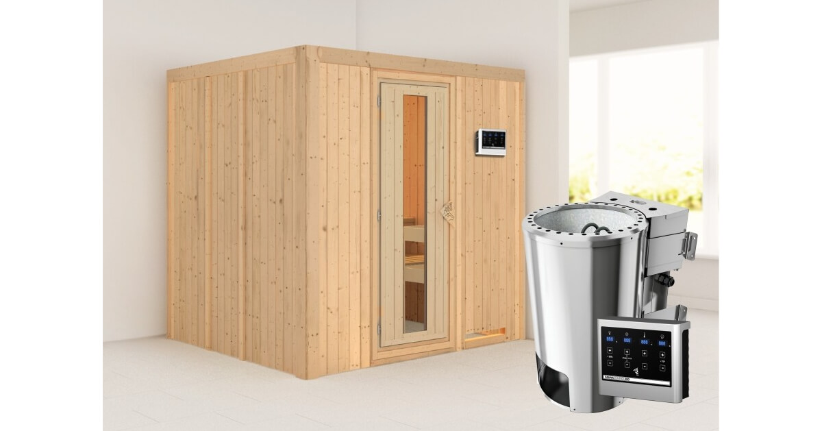 Karibu 40mm Systemsauna Daria mit 3,6kW BIO-Kombiofen mit ext. Steuerung Easy