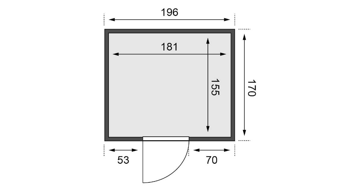 - Innenmaße: 181 x 155 cm, 192 cm hoch