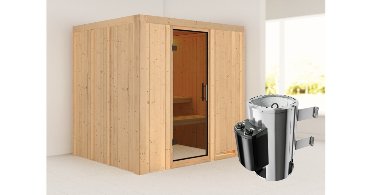 Karibu 40mm Systemsauna Daria mit 3,6kW Saunaofen mit integrierter Steuerung