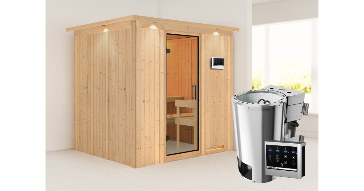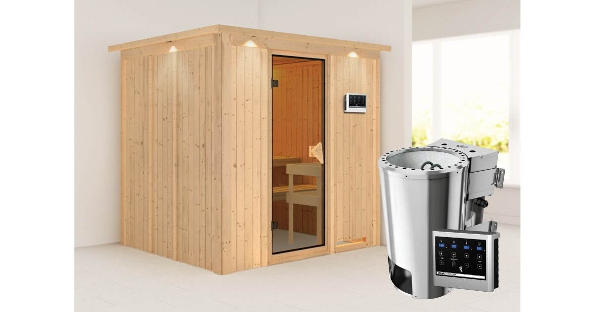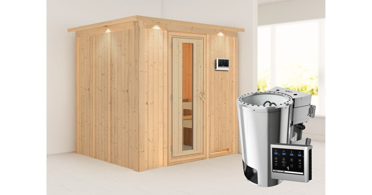 Karibu 68mm Systemsauna Daria mit 3,6kW BIO-Kombiofen mit ext. Steuerung Easy
