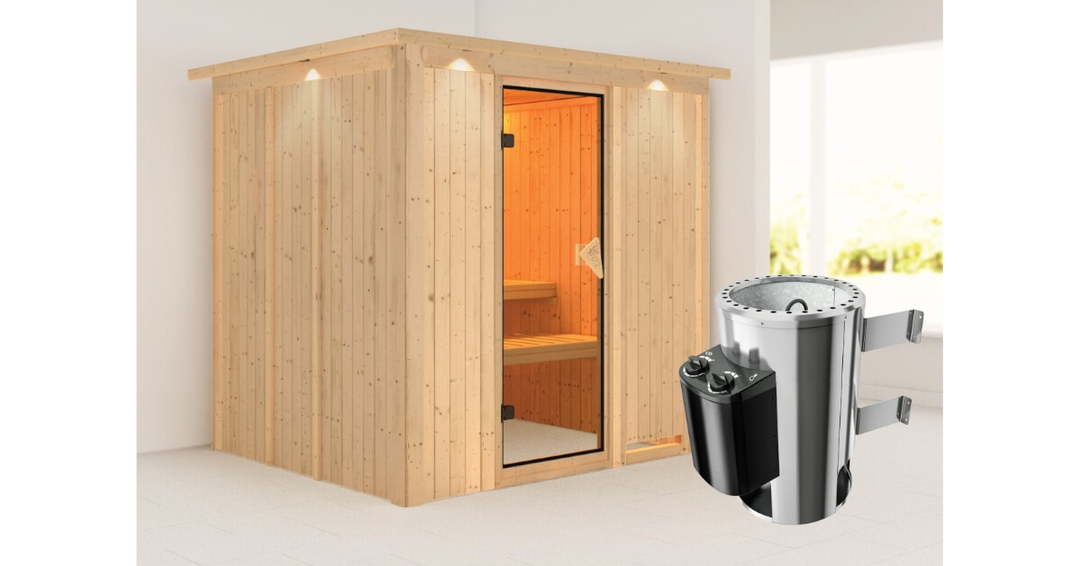Karibu 68mm Systemsauna Daria mit 3,6kW Saunaofen mit integrierter Steuerung