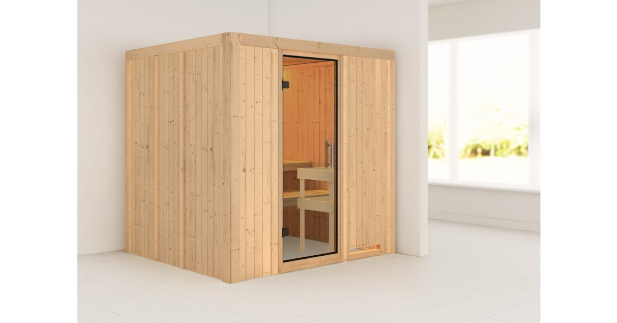 Das volle Saunaerlebnis genießen und dennoch Energie sparen. Dies ist möglich mit unserenr 68mm Systemsauna Daria und dem steckerfertigen 3,6kW-Saunaofen. Durch die vormontierten Wandelemente kann die Sauna schnell und einfach montiert werden. Die 68mm starken Elemente bestehen aus einer Rahmenkonstruktion, welche an der Sichtseite mit 12,5mm starkem Spezial-Softline-Profilholz verstärkt sind. Diese Konstruktion bietet eine ideale Isolierung und hält die Wärme perfekt im Innenraum. Optional ist die Sauna Daria mit einem Dachkranz inkl. drei LED-Spots erhältlich. Diese sorgen nicht nur für ein schönes Ambiente im Außenbereich der Sauna, sondern setzen diese auch noch gekonnt in Szene. Die Außenmaße betragen 196 x 170 x 198cm (B/T/H). In den großen Innenraum der Sauna gelangen Sie durch eine Saunatür. Hier haben Sie die Wahl aus vier Varianten und das ganz ohne Mehrkosten. Egal ob in der wärmegedämmten, energiesparenden Version, der klaren Ganzglastür, der Version mit bronzierte Ganzglastür oder der modernen graphitfarbenen Türversion. Hier ist garantiert für jeden Geschmack das Richtige dabei. Um sich im Saunainneren perfekt erholen zu können, wird hier1 Saunaliege aus massivem Espenholz montiert. Das Holz ist besonders weich und nimmt die Wärme nicht so stark an. Dies ermöglicht ein angenehmes Sitz- und Liegegefühl. Bei dem steckerfertigen Saunaofen können Sie zwischen drei Varianten wählen. Einer mit integrierter Steuerung, einer mit externem Steuergerät Easy und einem 3,6kW Bio-Kombi-Ofen. Das Besondere an diesem Saunaofen ist aber nicht seine Variantenvielfallt, sondern der Anschluss. Der Ofen wird mithilfe eines Steckers zur Inbetriebnahme an eine hausübliche 230Volt-Steckdose angeschlossen. Da hierfür kein Fachmann erforderlich ist, entfallen die Kosten für einen Elektriker und einen Umbau auf einen 400 Volt-Anschluss. Genießen Sie das volle Saunaerlebnis und sparen zusätzlich Energie mit der 68mm Plug & Play Sauna Daria.