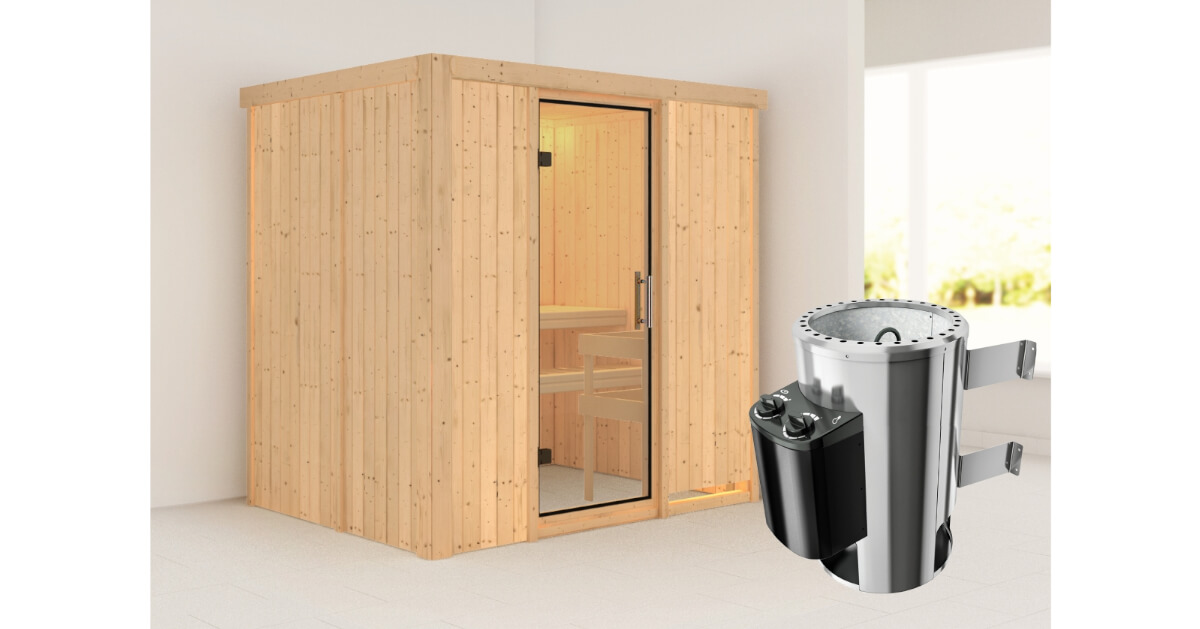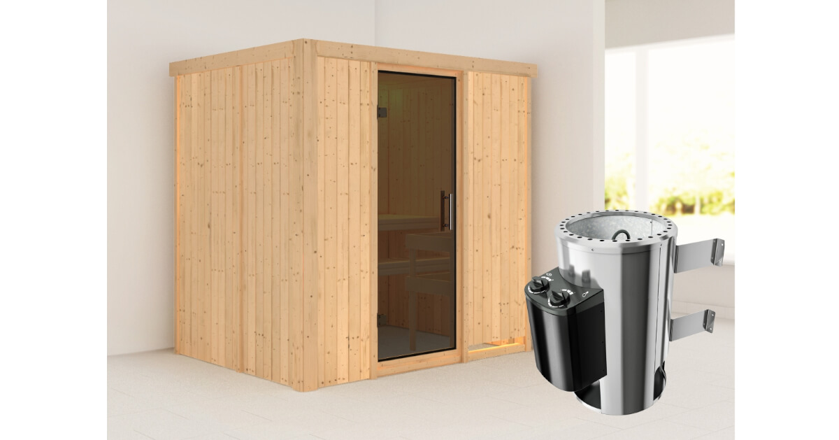 Karibu 40mm Systemsauna Fanja mit 3,6kW Saunaofen mit integrierter Steuerung