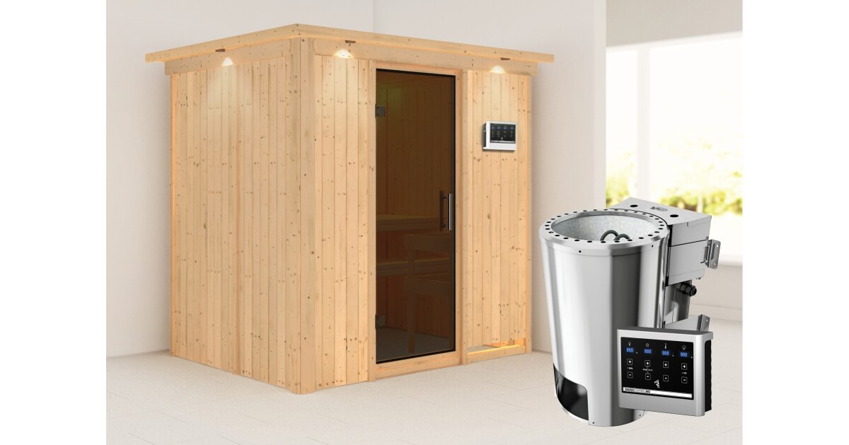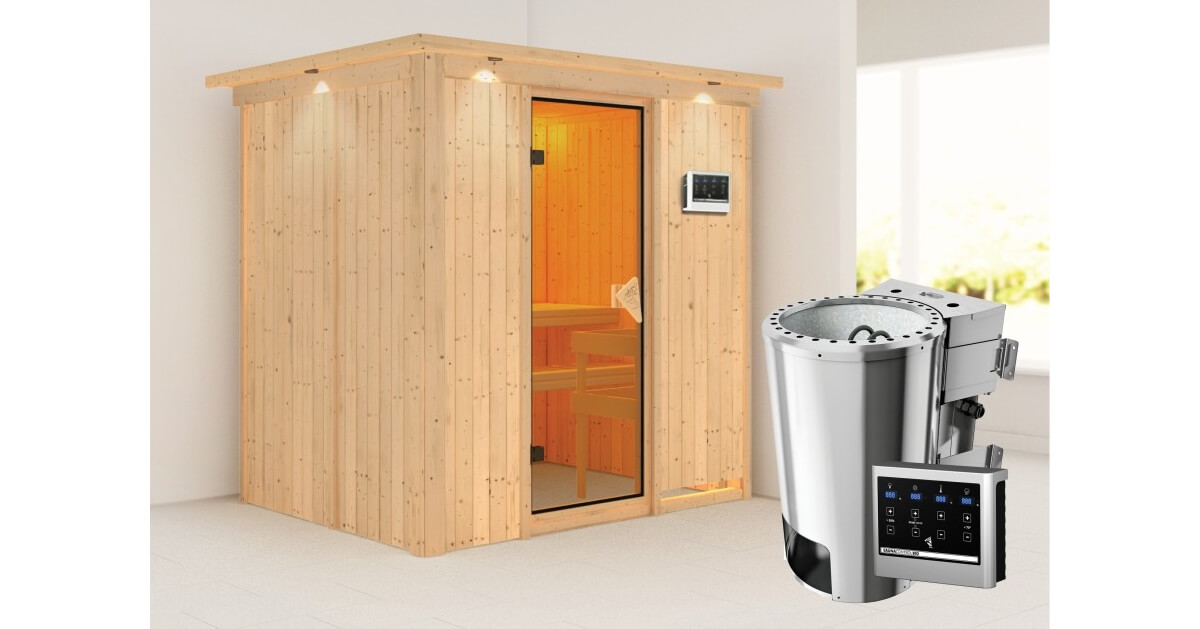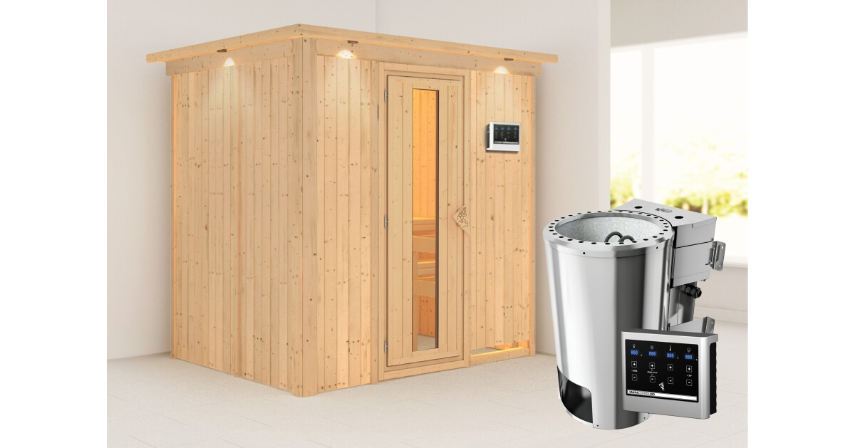 Karibu 68mm Systemsauna Fanja mit 3,6kW BIO-Kombiofen mit ext. Steuerung Easy