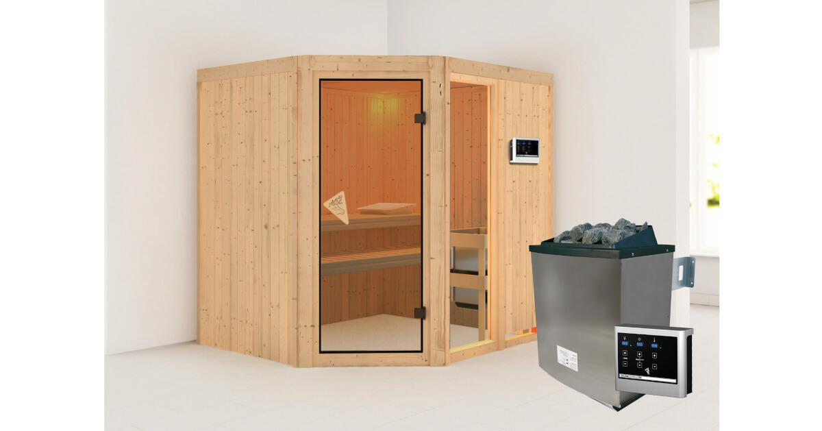 Karibu 68mm Systemsauna Fiona 2 + 9kW Saunaofen mit externer Steuerung