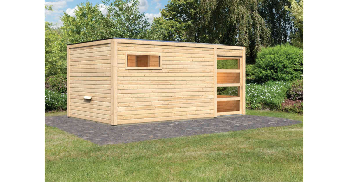Einen schönen sonnigen Tag mit einem ausgiebigen Saunagang ausklingen lassen? Oder einen Wintertag im Garten bei einem entspannenden Saunabad genießen? Mit der Außensauna Hygge haben Sie viele Möglichkeiten. Das Saunahaus verfügt über ein Außenmaß von 508 x 276 cm und besteht aus 38mm starken Massivholzbohlen aus nordischem Fichtenholz. Es wird im Steck-/Schraubsystem montiert, welches eine einfache und schnelle Montage ermöglicht.