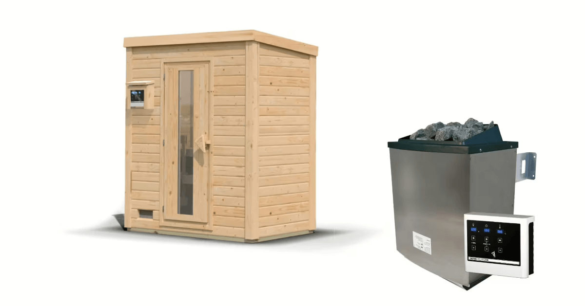 9 kW Ofen mit externer Steuerung und Steuergerät easy, 1 stabile Liege aus Massivholz, Montageanleitung