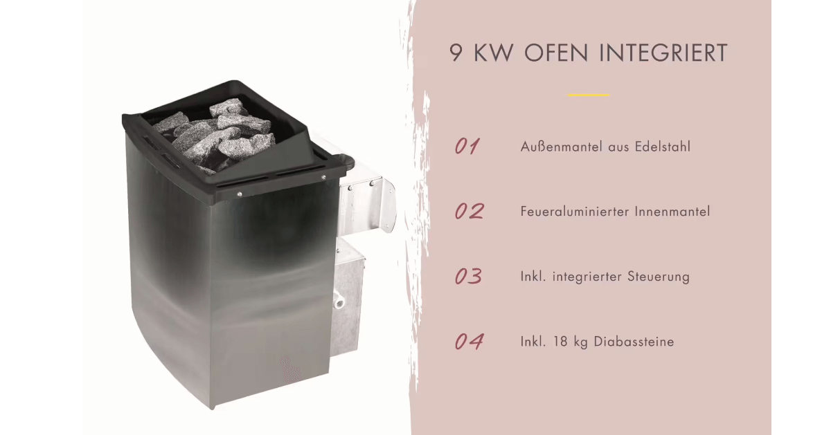- inkl. 9 kW Ofen mit integrierter Steuerung