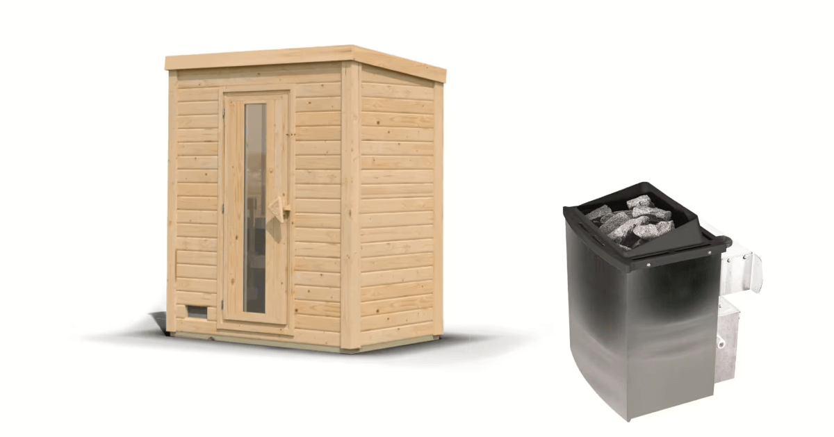 Karibu Sauna Hytti 0 naturbelassen mit 9 kW Ofen mit integrierter Steuerung