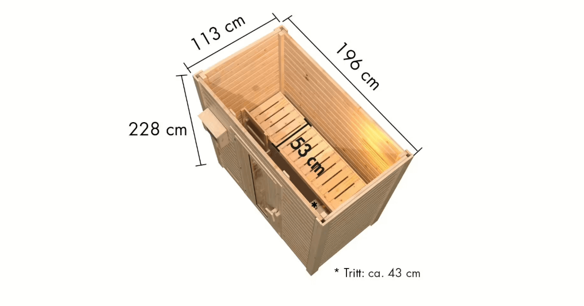 Willkommen im ultimativen Rückzugsort für Entspannung und Regeneration! Unser Saunahaus vereint Qualität, einfache Montage und maximale Bequemlichkeit für ein unvergleichliches Wellness-Erlebnis. Mit einer Wandstärke von 38 mm und einem innovativen Steck-Schraubsystem bietet unser Saunahaus nicht nur eine robuste Konstruktion, sondern auch eine unkomplizierte und schnelle Montage, damit Sie schneller den Saunagenuss auskosten können. Ein herausragendes Merkmal unseres Saunahauses sind die kesseldruckimprägnierten Unterleger, die eine lange Lebensdauer und optimale Stabilität gewährleistet. Diese spezielle Behandlung schützt das Holz vor Witterungseinflüssen und Feuchtigkeit, so dass Sie Ihre Sauna für viele Jahre ohne Sorgen genießen können. Die Vielseitigkeit unseres Saunahauses kennt keine Grenzen. Dank seiner kompakten Größe passt es problemlos auf einen Balkon, so dass Sie das volle Saunaerlebnis auch in urbanen Umgebungen genießen können, ohne über einen großen Garten oder ein geräumiges Badezimmer zu verfügen. Entspannen Sie sich und tanken Sie neue Energie in Ihrem eigenen kleinen Wellness-Paradies, direkt vor Ihrer Tür.