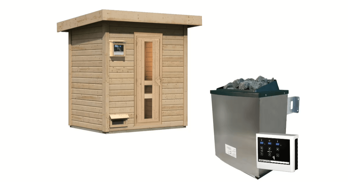 Karibu 38mm Saunahaus Hytti 1 mit 9 kW Ofen mit externer Steuerung