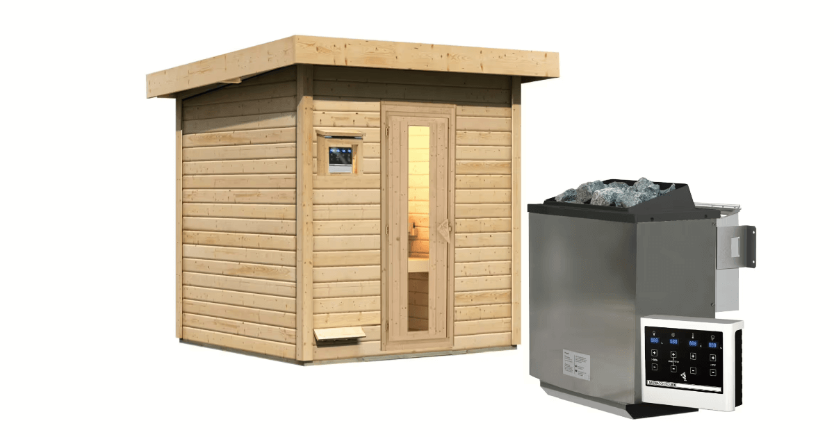 Karibu 38mm Saunahaus Hytti 2 mit 9 kW Bio-Ofen mit externer Steuerung