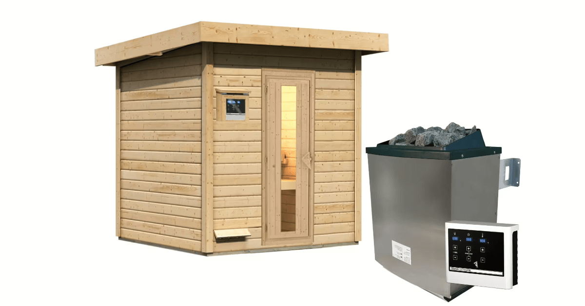 Karibu Sauna Hytti 2 naturbelassen mit 9 kW Ofen mit externer Steuerung
