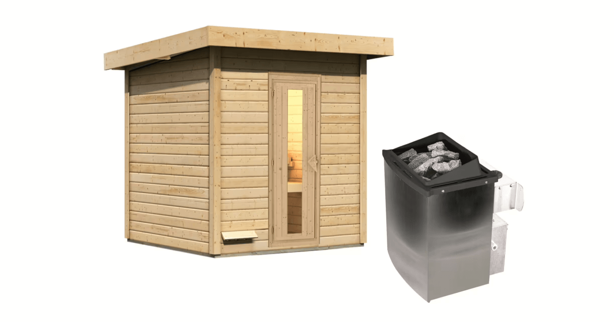 Karibu Sauna Hytti 2 naturbelassen mit 9 kW Ofen mit integrierter Steuerung