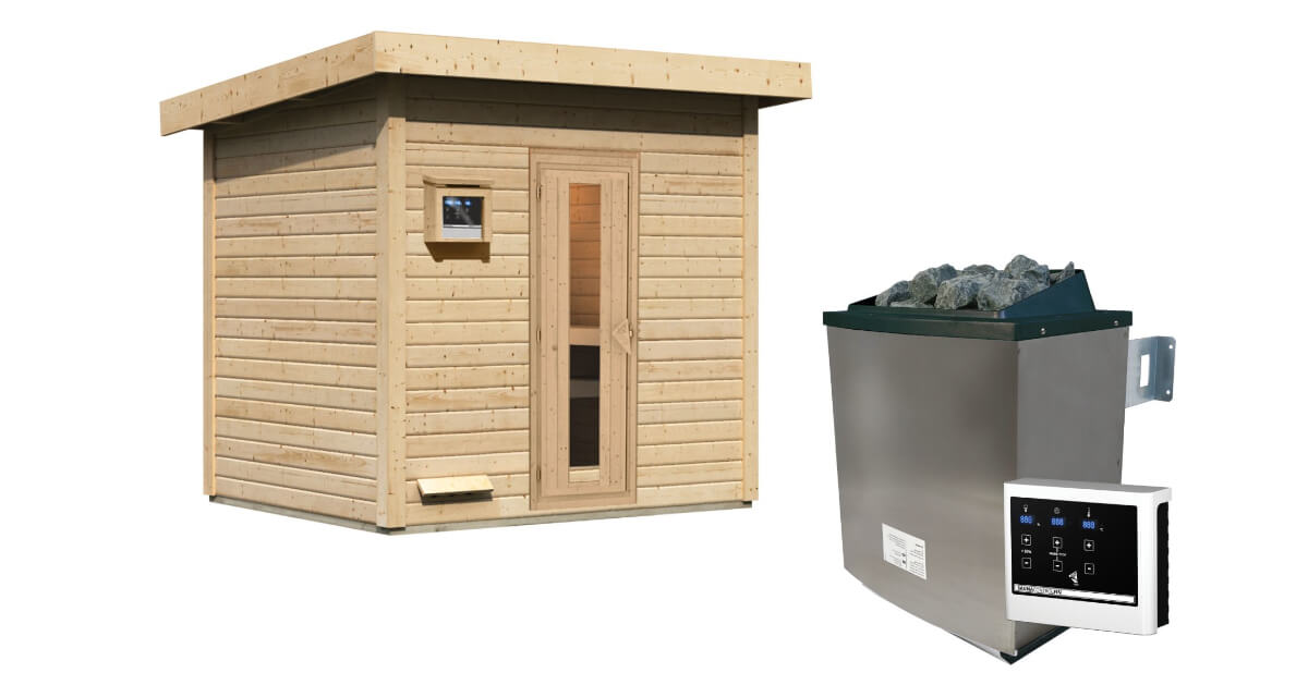 Karibu Sauna Hytti 3 naturbelassen mit 9 kW Ofen mit externer Steuerung