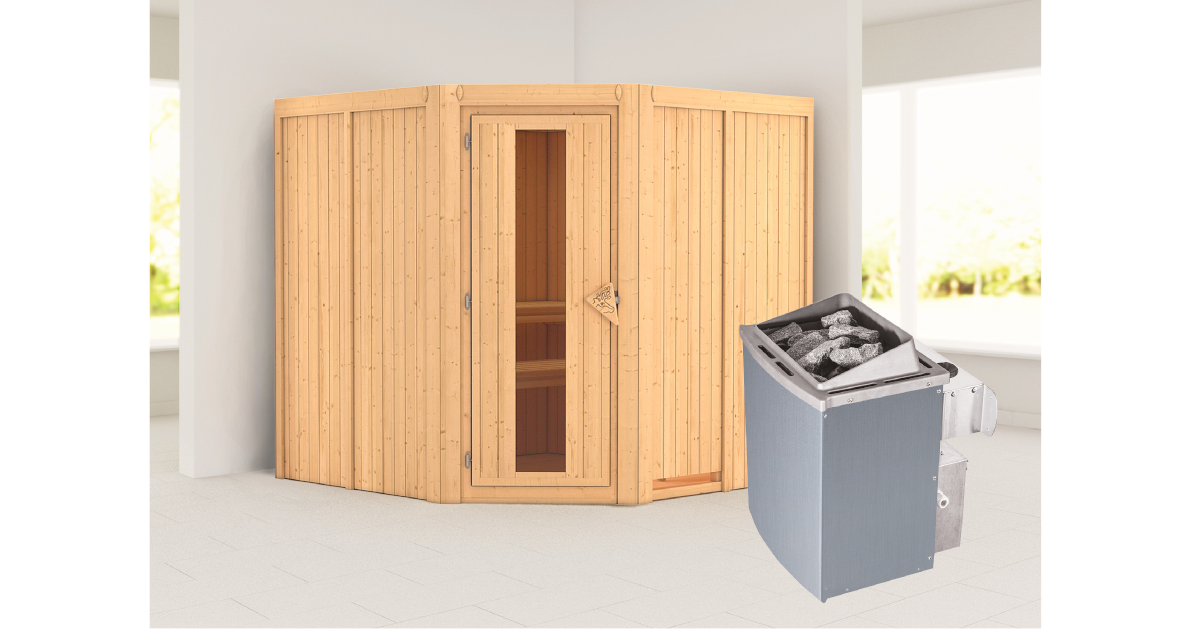 Karibu 68mm Systemsauna Jarin mit 9kW Saunaofen mit integrierter Steuerung