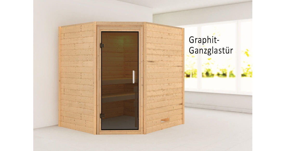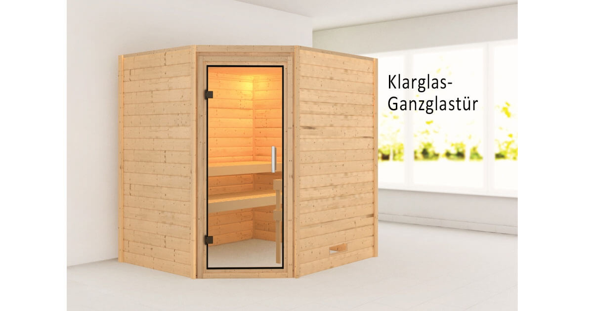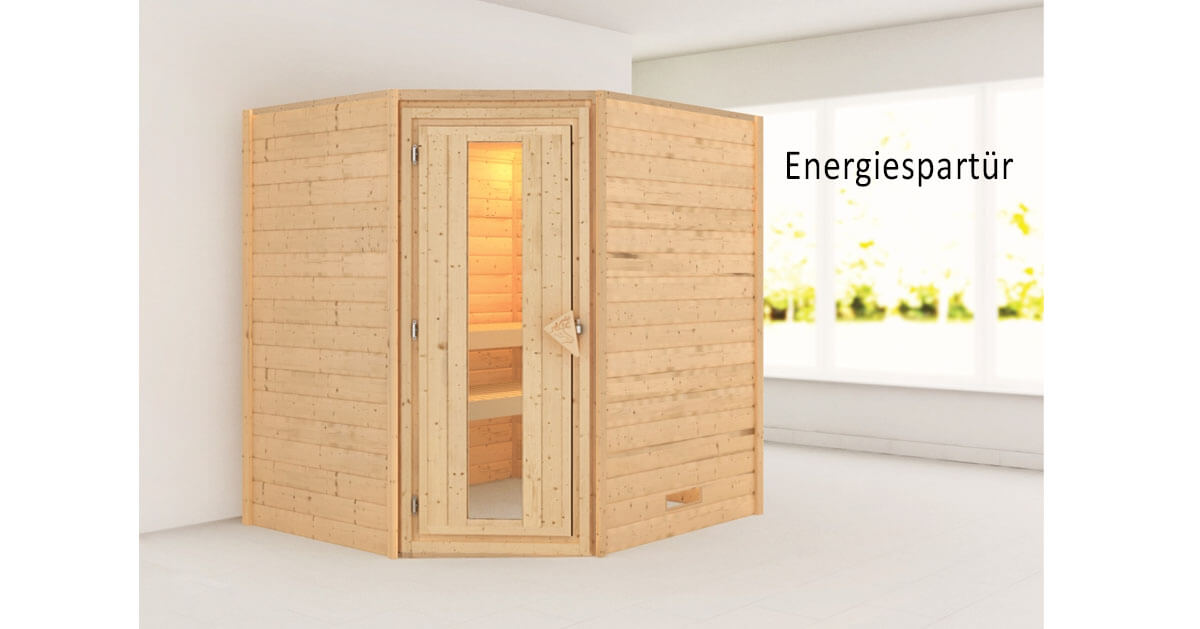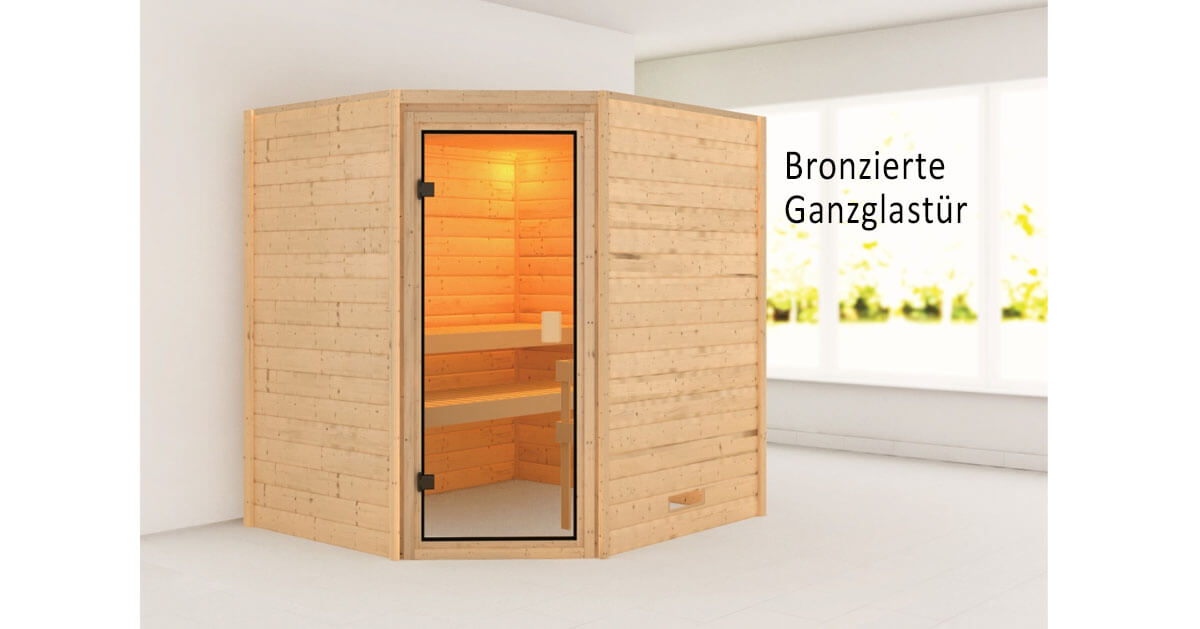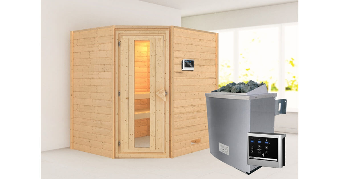 Karibu 38mm Massivholzsauna Mia mit 9kW Saunaofen (externe Steuerung)