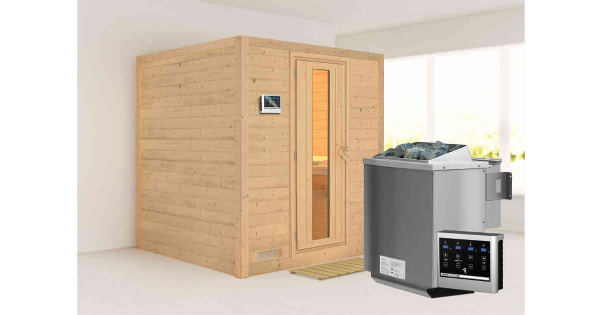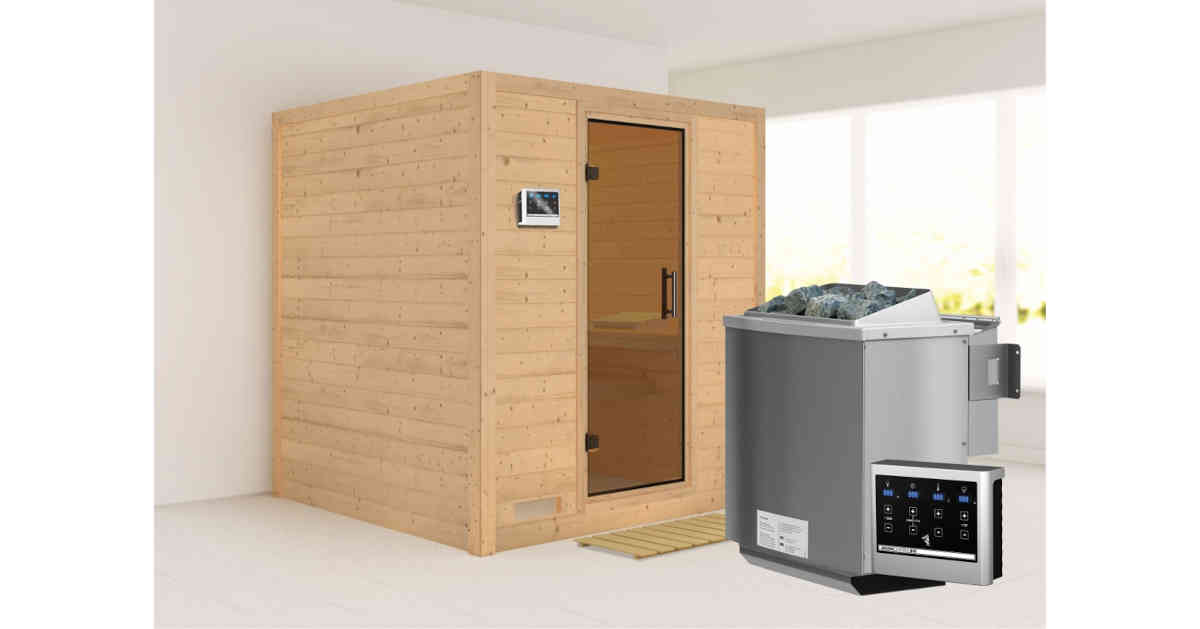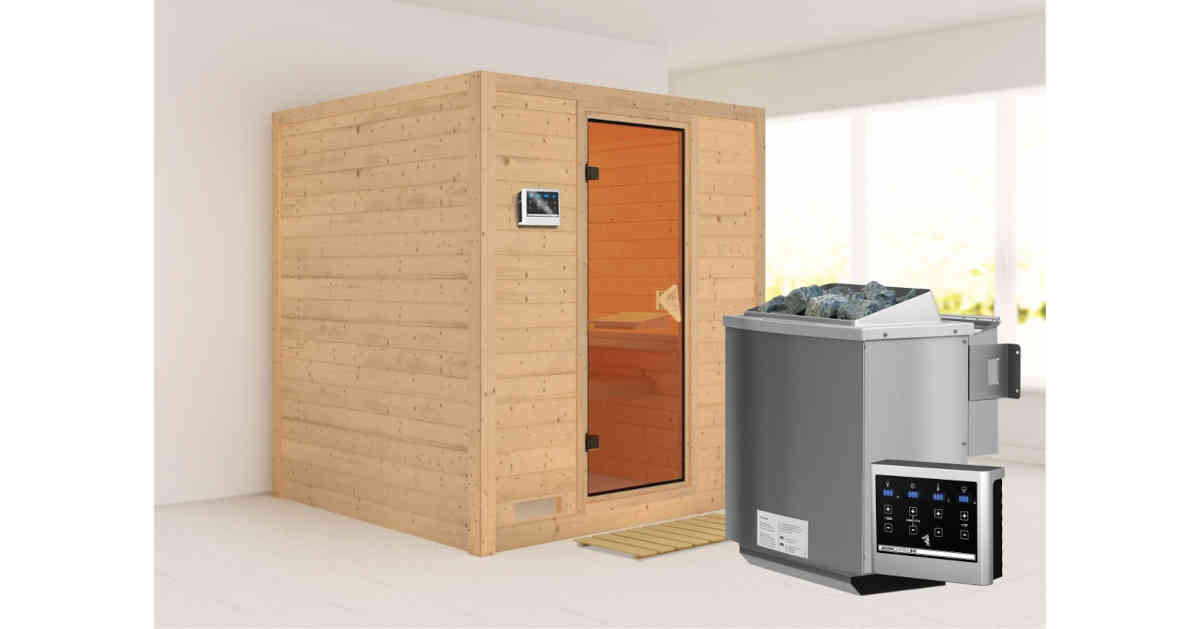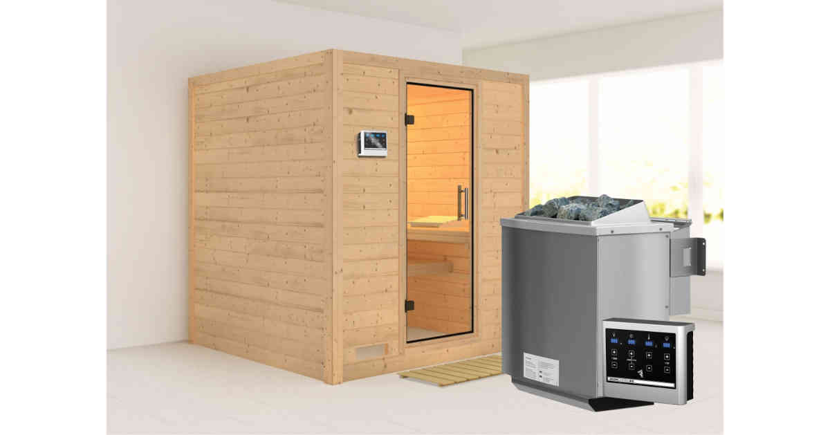 Karibu 40mm Systemsauna Mojave mit 9kW BIO-Kombiofen mit ext. Steuerung Easy