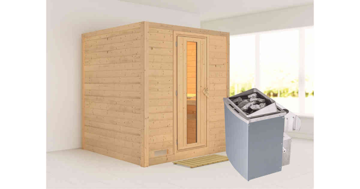 Ein Ort der Ruhe und Entspannung in den eigenen Vier Wänden. Nach einem stressigen Tag die Seele baumeln lassen und sich von der wohligen Wärme in einer Sauna verwöhnen ohne das Haus verlassen zu müssen. Dies ist möglich mit unserer 38 mm Massivholzsauna Mojave. Die stabile Konstruktion mit 38 mm Bohlen aus nordischem Fichtenholz wird im einfachen Steck-/ Schraubsystem montiert. Durch die massiven Vollholzwände wird im Saunainneren ein ideales Raumklima nach finnischem Vorbild geschaffen. Ein optional wählbarer Dachkranz inkl. 3 LED-Spots setzt die Sauna gekonnt in Szene. Wählen Sie eine von vier möglichen Türvarianten und passen Sie Ihre Sauna den eigenen Vorstellungen optimal an. Ob energiesparend mit einer Holztür mit Isolierglas, klassisch mit einer bronzierten Ganzglastür, modern mit einer Ganzglastür in graphitfarben oder schlicht mit einer klaren Ganzglastür. Hier ist garantiert das Richtige für Sie dabei. Mit einem Außenmaß von 196 x 196 x 200 cm (B/T/H) besitzt die Sauna Mojave die ideale Größe zum Entspannen und Wohlfühlen. Erweitern Sie Ihre Möglichkeiten mit dem optional erhältlichen 9kW-Bio-Kombiofen. Neben einer klassischen finnischen Sauna haben Sie hier die Möglichkeit einer Kräuterdampf-Kur, einem Dampfbad und einer Familiensauna. So wird es zu einem Saunaerlebnis für die ganze Familie. Lassen Sie sich von der wohltuenden Wirkung des Saunabadens überzeugen. Bei regelmäßiger Anwendung fühlen Sie sich nicht nur deutlich entspannter. Zusätzlich wirkt es sich positiv auf den Stoffwechsel aus, verfeinert das Hautbild und unterstützt den Stressabbau. Um ein besonderes Sauna-Gefühl zu schaffen, wird die Sauna mit Saunaliegen und einer Kopfstütze ausgestattet. Durch eine extra breite Saunaliege von 62cm Breite wird Ihnen ein besonders angenehmer Liegekomfort geboten. Ein Ofenschutzgitter schützt Sie vor Verbrennungen durch den Saunaofen. Mit einer optional erhältlichen Salzkristall Vital Sole oder der Salzkristall-Leuchte können Sie Ihre Atemwege befreien und wieder tief ein- und ausatmen. Genießen Sie die zahlreichen Vorteile des Saunieren und schaffe Sie einen Ort der Ruhe mit der Massivholzsauna Mojave.