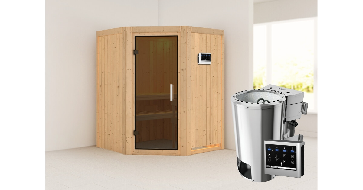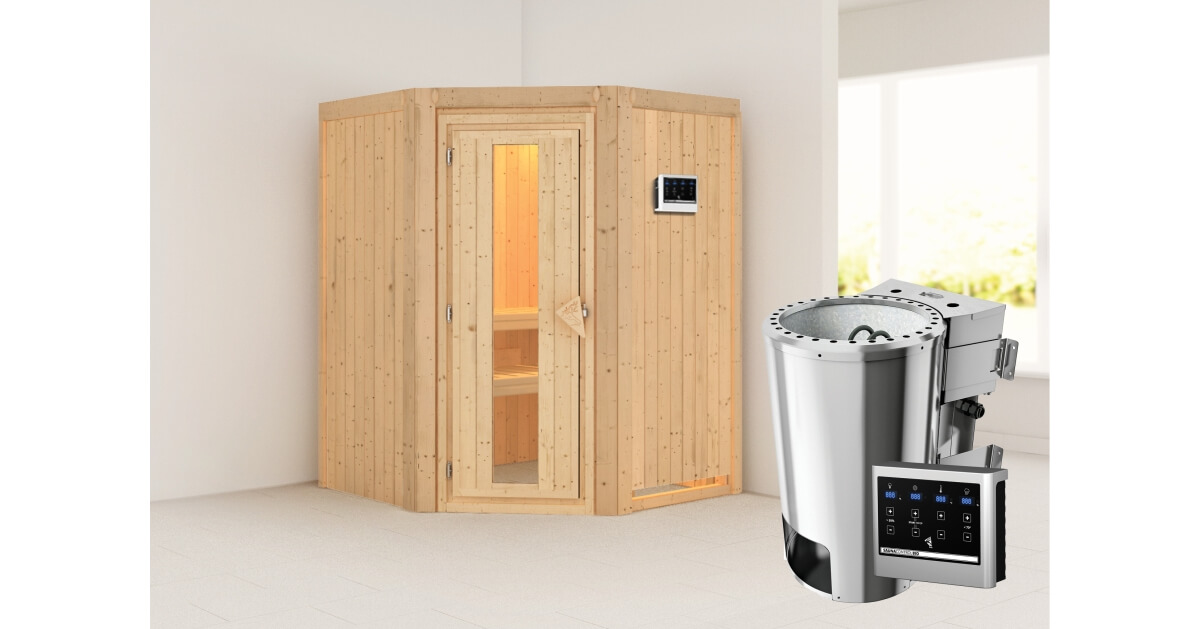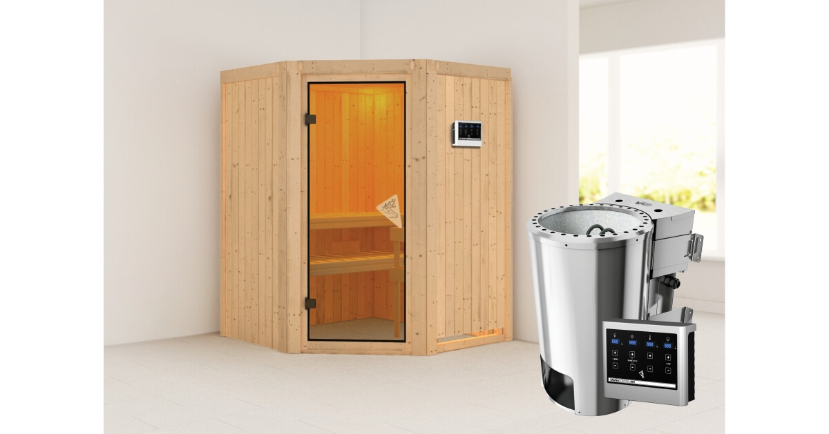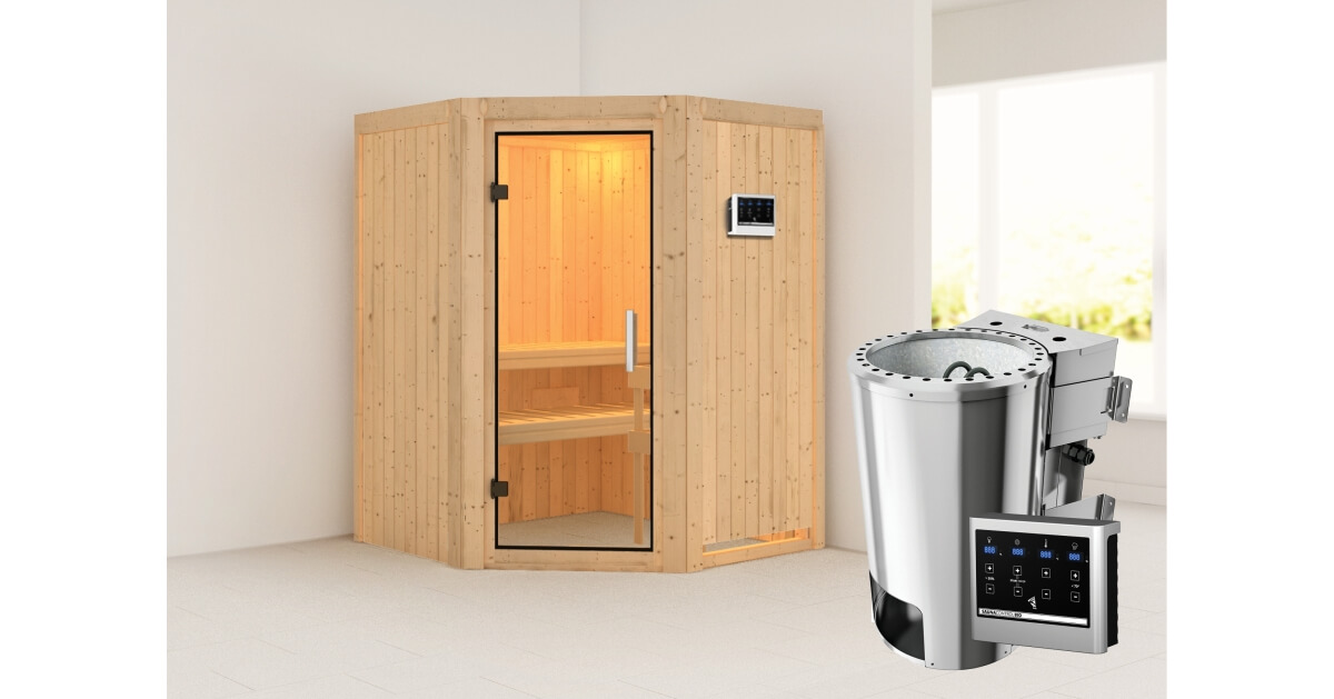 Karibu 40mm Systemsauna Nanja mit 3,6kW BIO-Kombiofen mit ext. Steuerung Easy