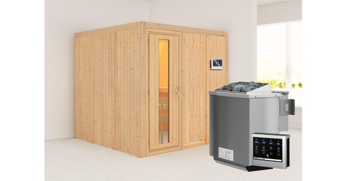Karibu 68mm Systemsauna Rodin + 9kW BIO-Kombiofen mit ext. Steuerung Easy
