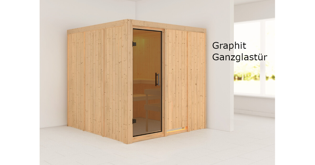 Sparen Sie wertvolle Energie mit der Systemsauna Rodin. Eine 68mm starke Konstruktion, bestehend aus einer Rahmenkonstruktion mit 42mm starker Mineraldämmwolle und einer Verkleidung an der Sichtseite aus 12,5mm Spezial-Softline-Profilholz, hält die Wärme optimal im Saunainneren. Die Decke besteht aus einer 57mm starken Spezialplatte mit Mineraldämmwolle. Die Außenmaße ohne Dachkranz betragen 196 x 196 x 198cm (B/T/H). Die Sauna verfügt über 3 Saunabänke aus Espenholz zum Entspannen und Wohlfühlen. Mit einem optional erhältlichen 9kW-Saunaofen bringen Sie das Innere schnell auf Temperatur. Bei dem Ofen können Sie zwischen einer Variante mit integrierter Steuerung, einer Variante mit externer Steuerung oder einem 9kW Bio-Kombiofen wählen. So ist garantiert für jeden das Richtige dabei. Durch einen optionalen Dachkranz inkl. drei LED-Spots können Sie Ihre Sauna von außen beleuchten und sie so perfekt in Szene setzen. In den Innenraum gelangen Sie durch eine Saunatür. Hier können Sie sich zwischen vier möglichen Varianten entscheiden. Egal ob klassisch mit bronziertem Glas, modern mit graphitfarbenem Glas, schlicht mit klarem Türglas oder passend mit einer energiesparenden, wärmegedämmten Holztür mit klarem Isolierglas. Durch die vorgefertigten Wand und Deckenelemente wird Ihnen ein einfacher Aufbau ermöglicht. Passen Sie die Sauna auf Ihre Bedürfnisse an mit unserem optional erhältlichen Zubehör. Eine ergonomische Kopfstütze für den optimalen Liegekomfort, eine ergonomische Rückenlehne zur perfekten Entspannung oder eine Saunaleuchte modern für das richtige Ambiente. Genießen Sie die Ruhe nach einem anstrengenden Arbeitstag bei einem ausgiebigen Saunagang und erholen Sie sich vom Alltag. Verringern Sie den Energieverbrauch beim Saunieren mit der 68mm Systemsauna Rodin.