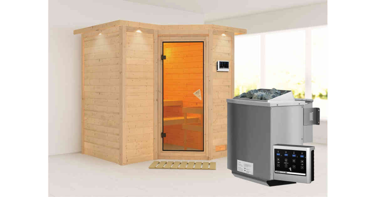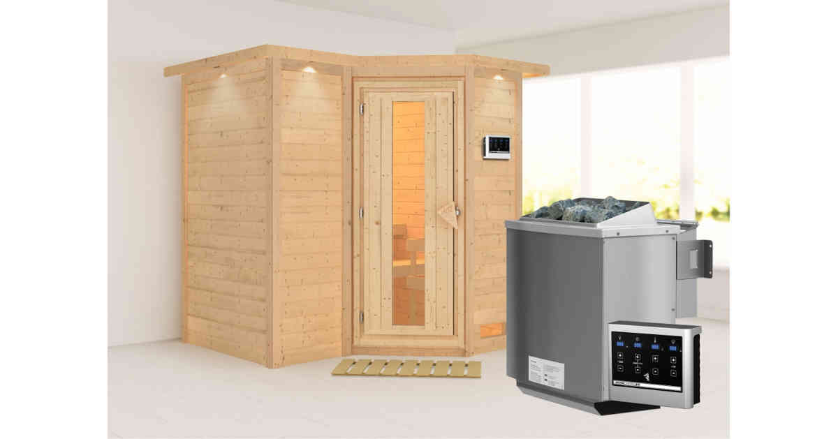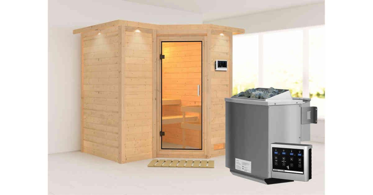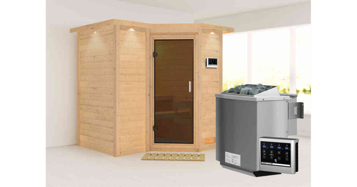 Karibu 38mm Systemsauna Sahib 1 mit 9kW BIO-Kombiofen mit ext. Steuerung Easy