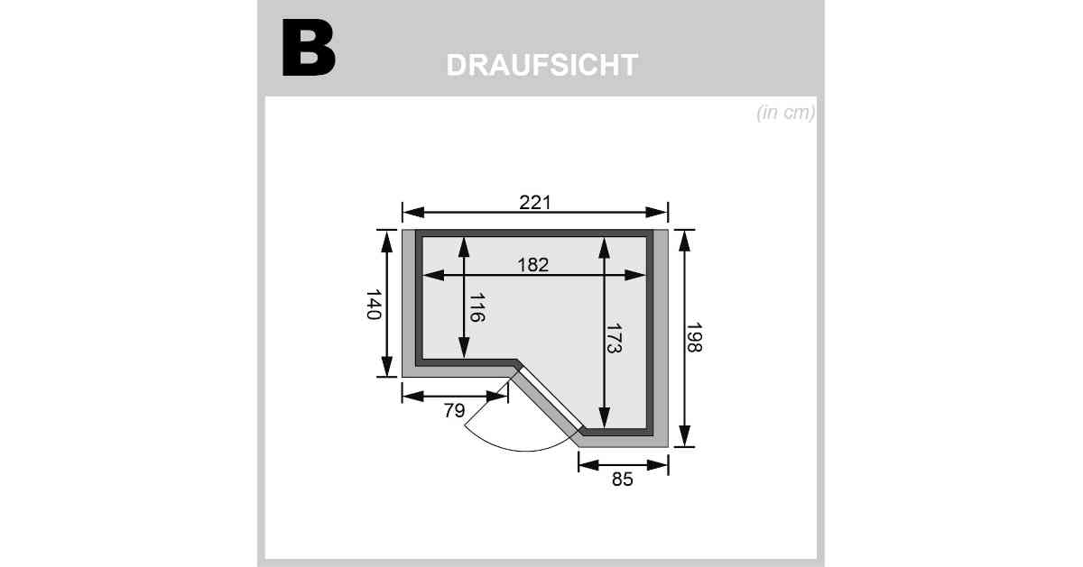 - Innenmaße: 182 x 173 cm, 200 cm hoch