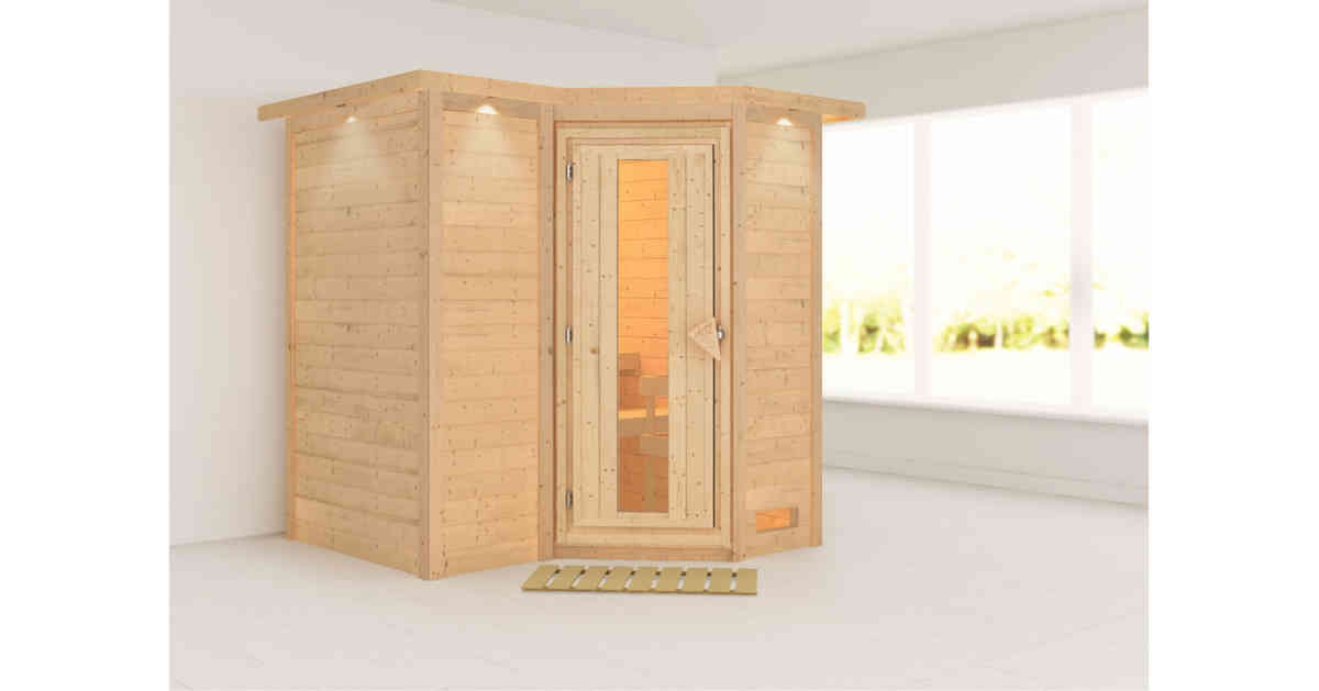 Karibu 38mm Systemsauna Sahib 1 mit Dachkranz
