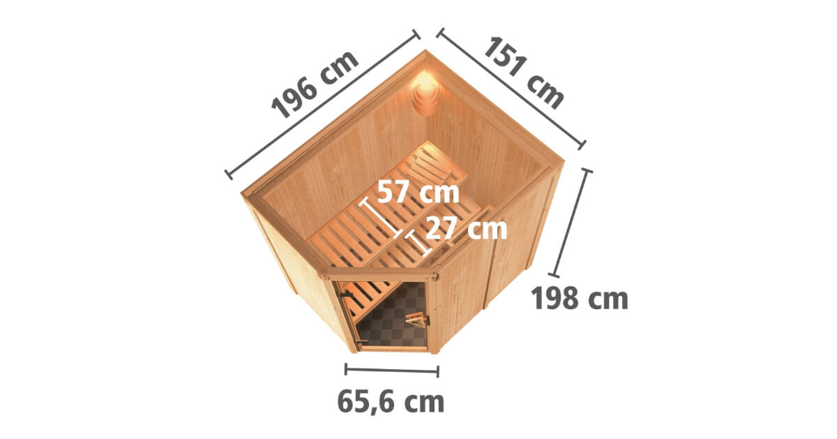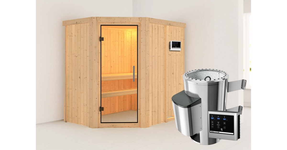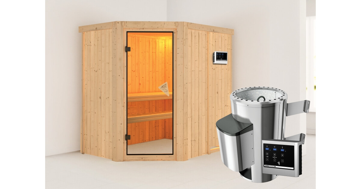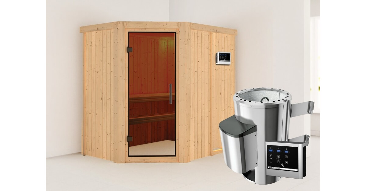 Karibu 40mm Massivholzsauna Saja mit 3,6kW Saunaofen