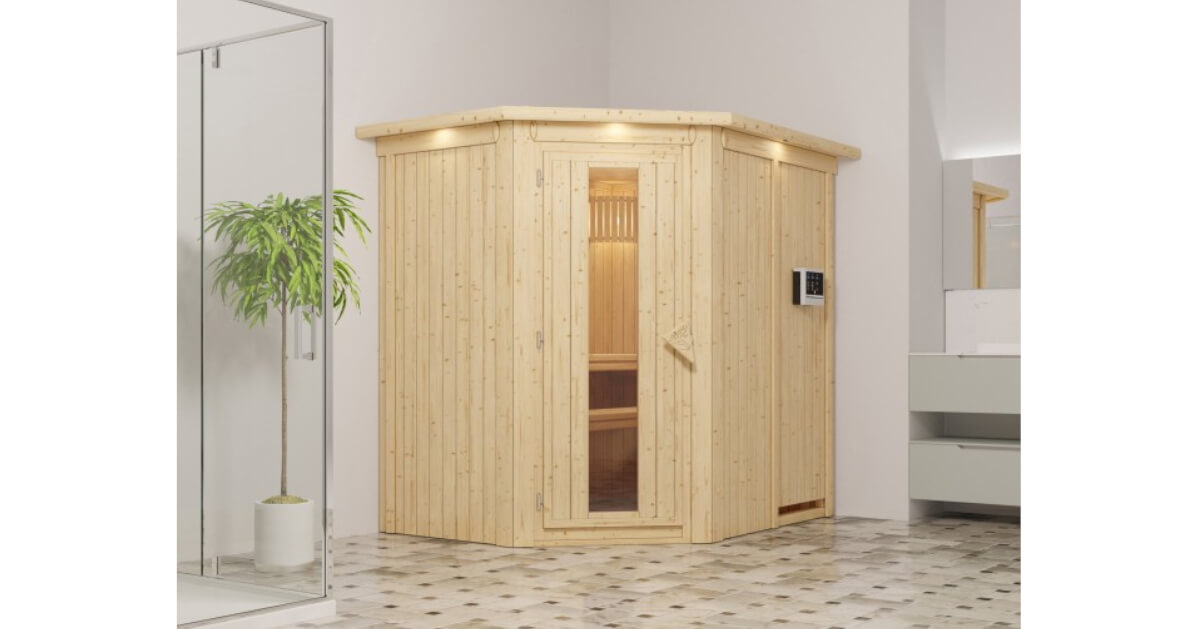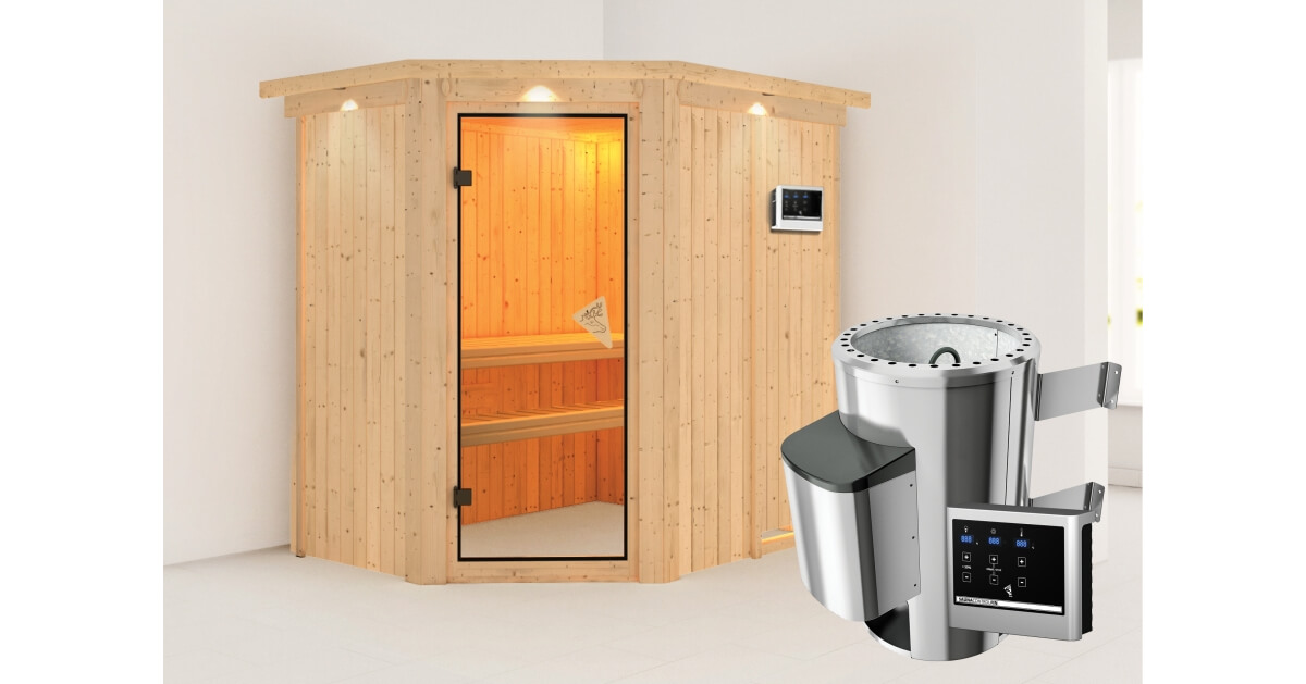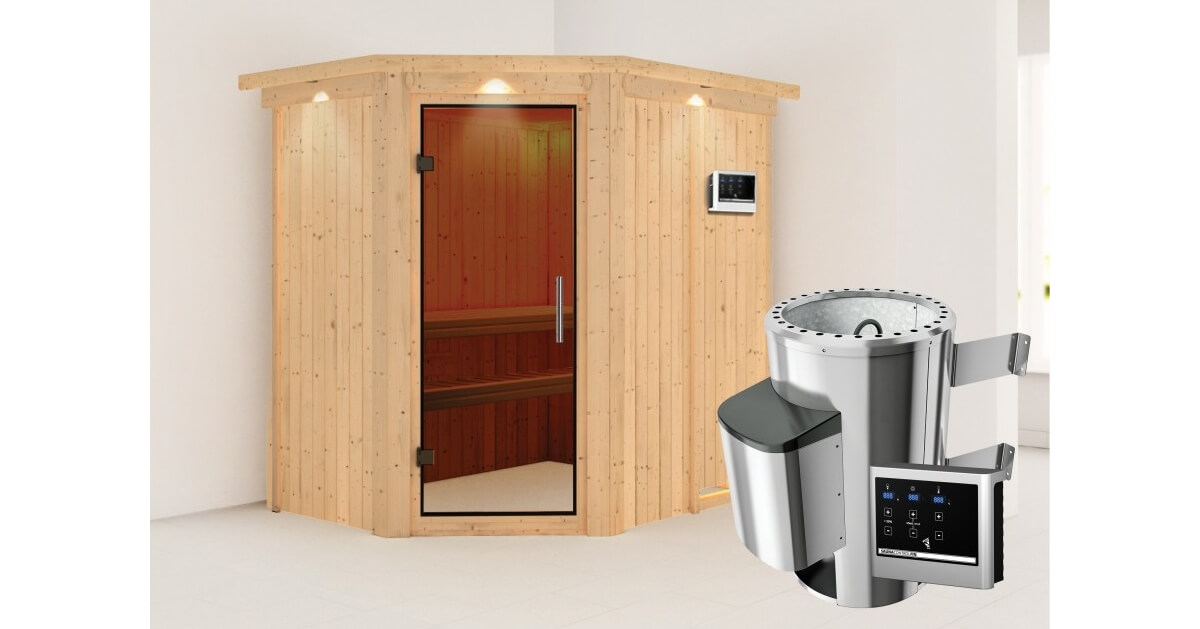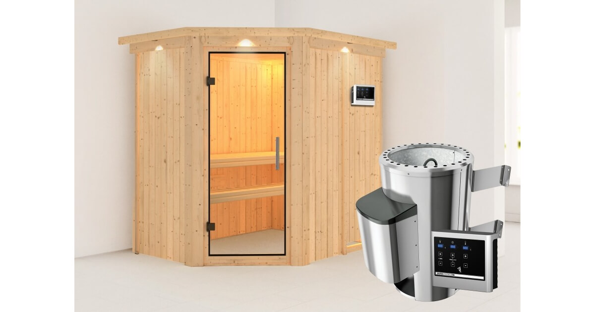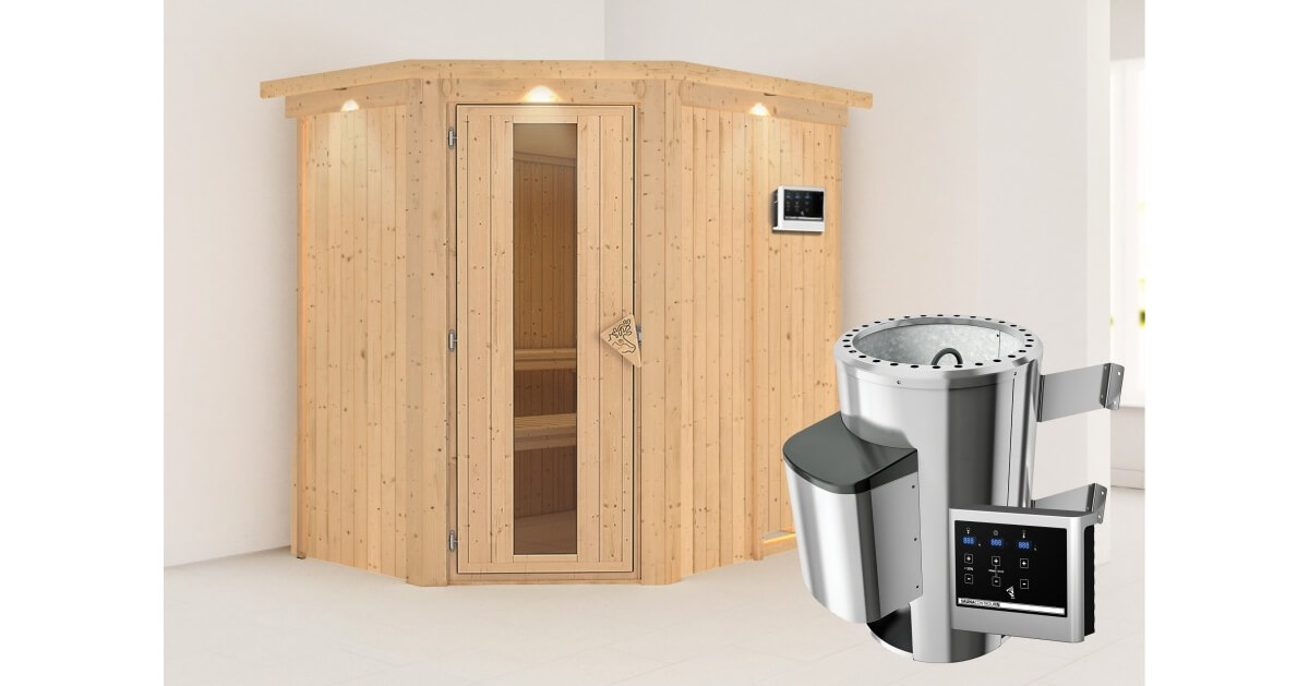 Karibu 68mm Systemsauna Saja mit 3,6kW Saunaofen mit ext. Steuerung Easy