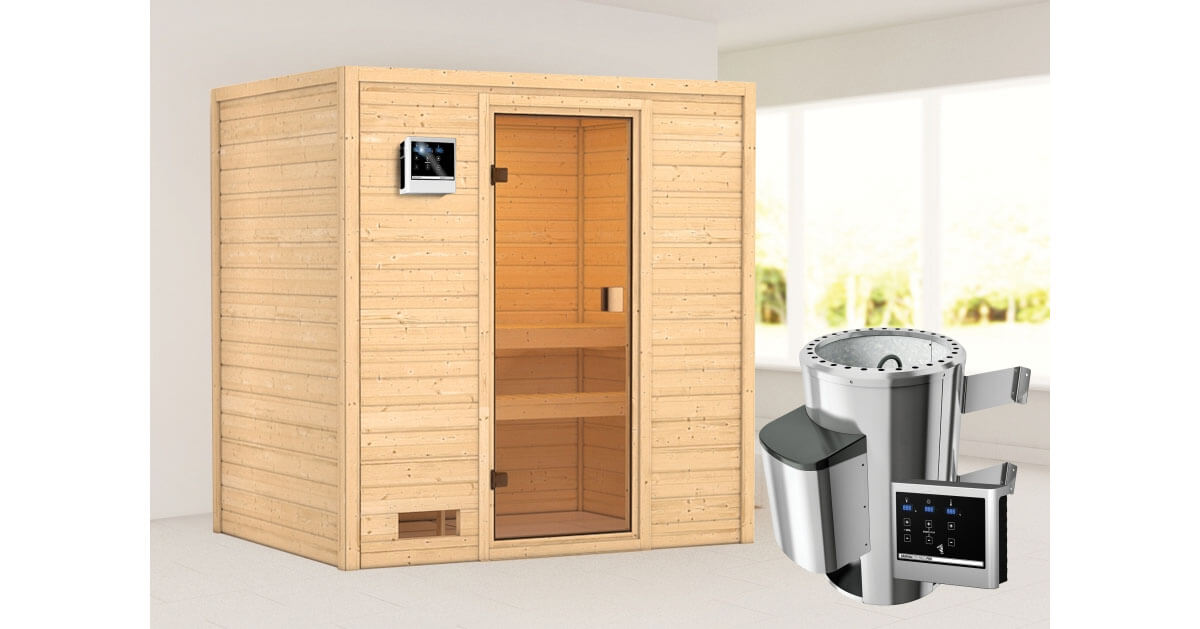 Karibu 38mm Massivholzsauna Selena mit 3,6kW Saunaofen