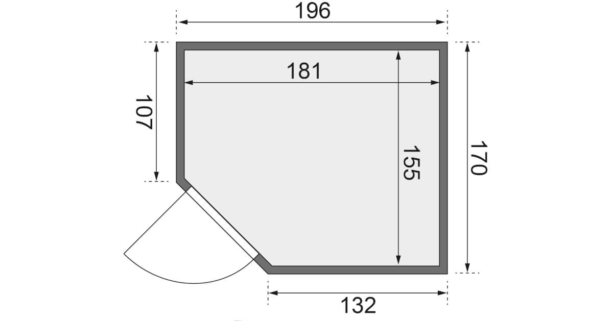 - Innenmaße: 181 x 155 cm, 192 cm hoch