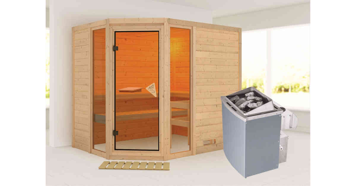 Karibu 38mm Systemsauna Sinai 3 mit 9kW Saunaofen mit integrierter Steuerung