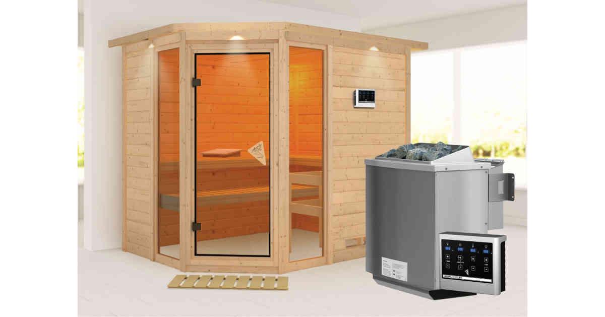 Karibu 38mm Systemsauna Sinai 3 mit 9kW BIO-Kombiofen mit ext. Steuerung Easy
